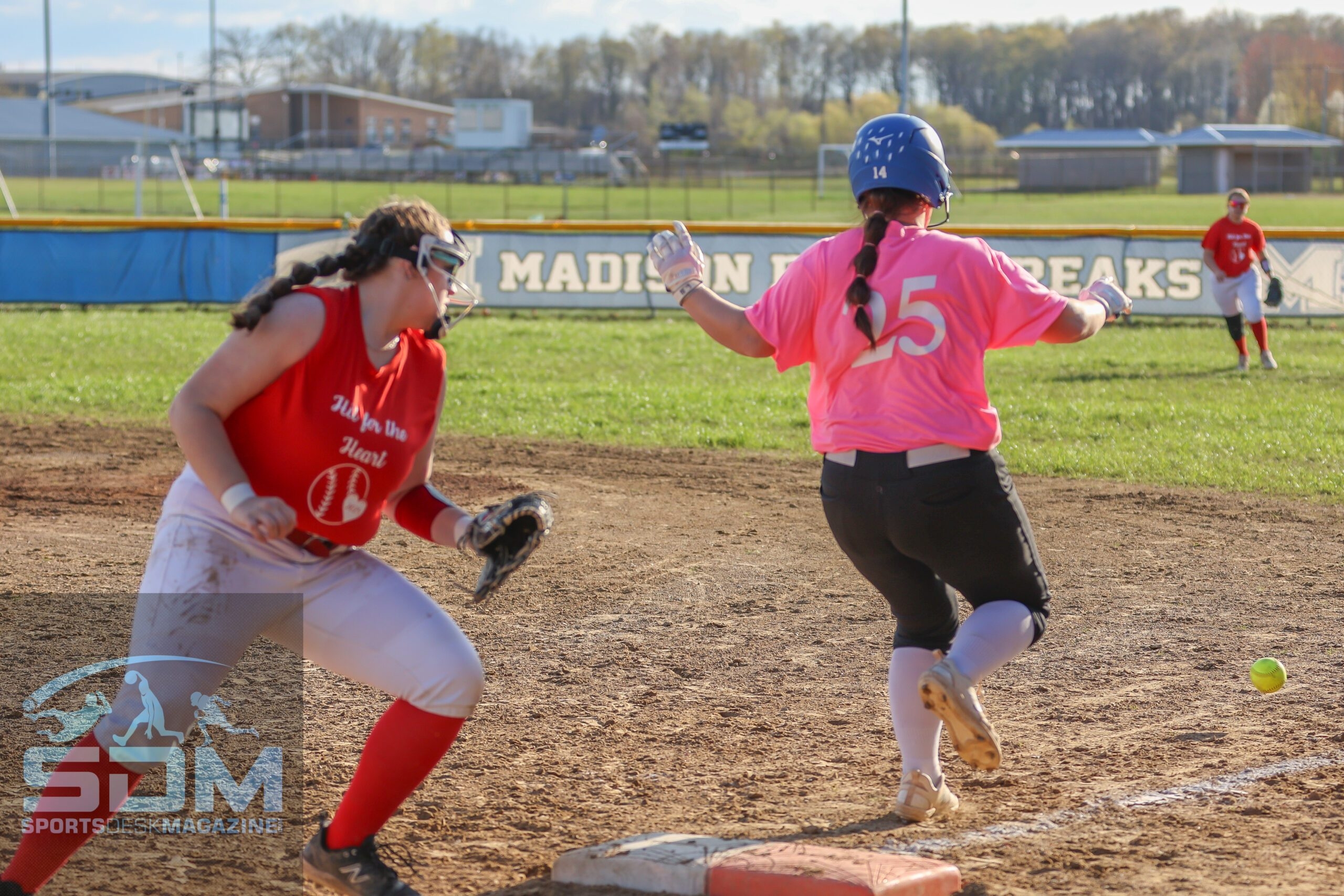 FUNdraiser: Both teams wore custom T-shirts (Pink for Madison, Red for Jefferson) as part of “Hit for the Heart”. The effort put together by Natalie Best was to raise awareness for heart health and the fight against heart disease.